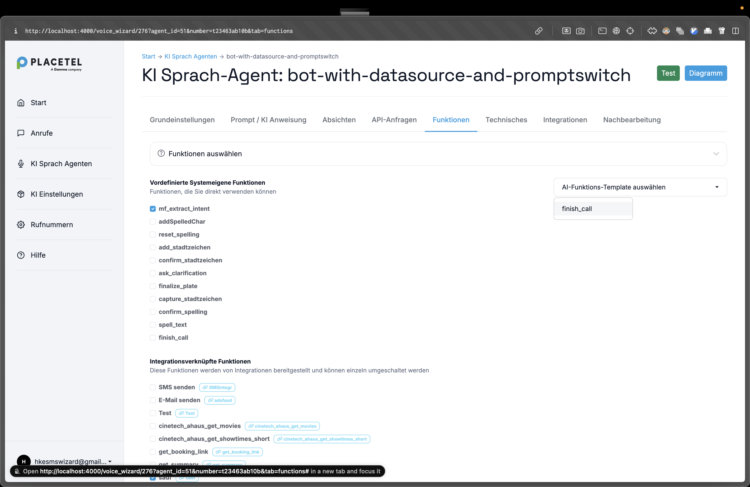 Wie kann ich meinem Placetel AI Agenten beibringen ein Gespräch zu beenden bzw. aufzulegen?